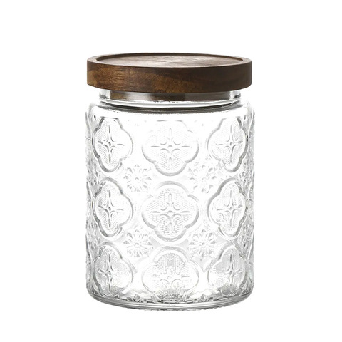 500ml 700ml 1000mlエンボスガラスクッキー瓶竹木制食品保管用キャップ付き